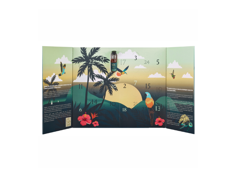👉 Un coffret collector pour vivre 24 jours de découvertes intenses et patienter jusqu’à Noël dans une ambiance exotique et festive.